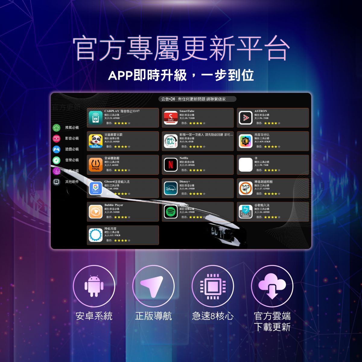 ▫️支援Netflix 、Disney+、Spotify系統